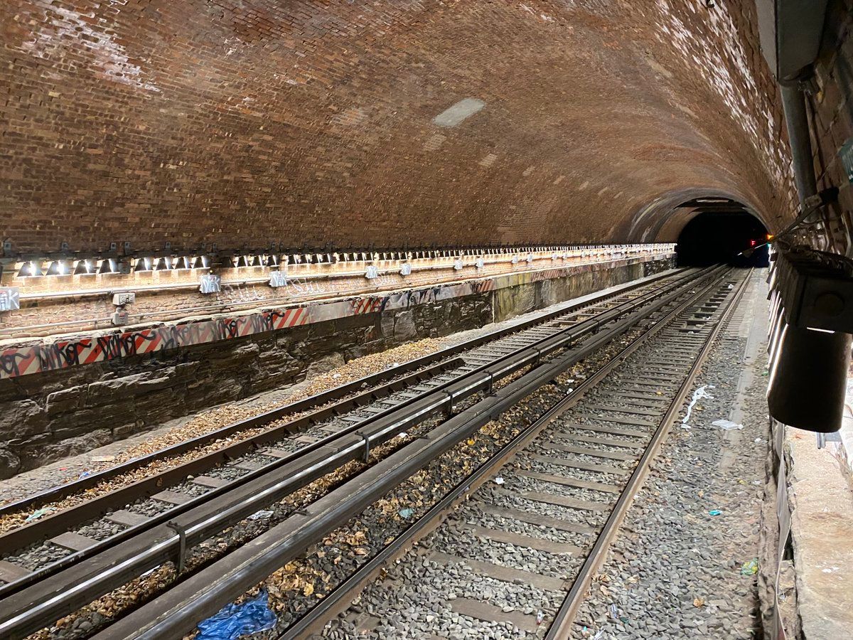 They fixed the lighting in the oldest tunnel in the subway! The shuttle never looked so good.