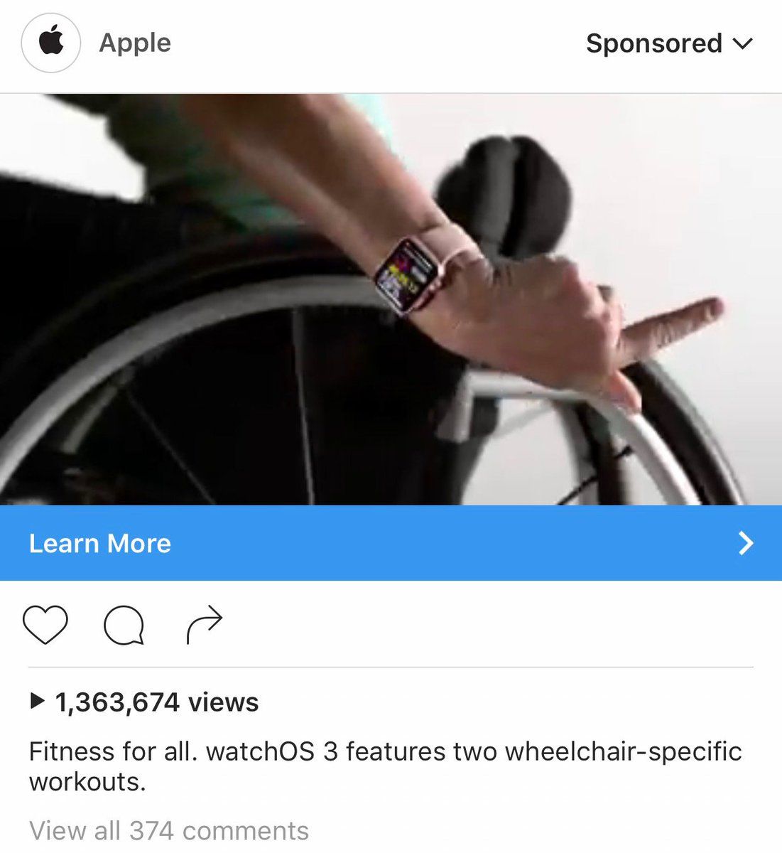 Apple is advertising wheelchair fitness features in WatchOS 3. This is 👌🏼